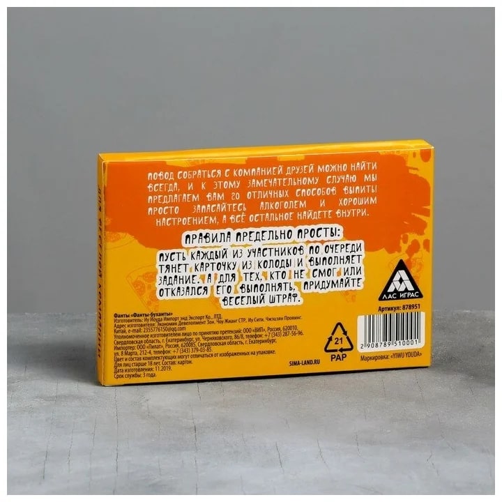 Купить игра для компании "фанты буханты" 20 карт от 100 руб. с доставкой до пункта выдачи в Белой Холунице. Интернет магазин ДекаМаркет. Оплата при получении.