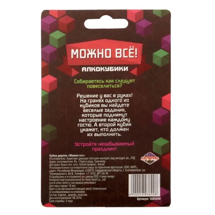 Купить кубик "можно все", алкокубики для принятия решений от 60 руб. с доставкой до пункта выдачи в Белой Холунице. Интернет магазин ДекаМаркет. Оплата при получении.